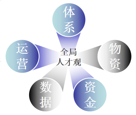 全局性人才观涵盖五个方面,需要有懂体系建设、物资管理、资金运营、数据分析、运营管理的人才,如图8-3-1所示。