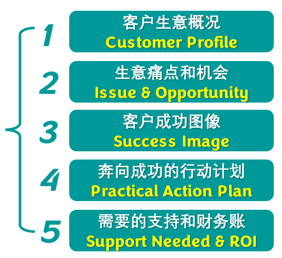 “接着,第四步和第五步就要奔着客户成功图像的具象目标制订详细的行动计划和支持清单(包括财务费用测算和提报,以便执行后的及时核销入账)。”如图5-8所示。