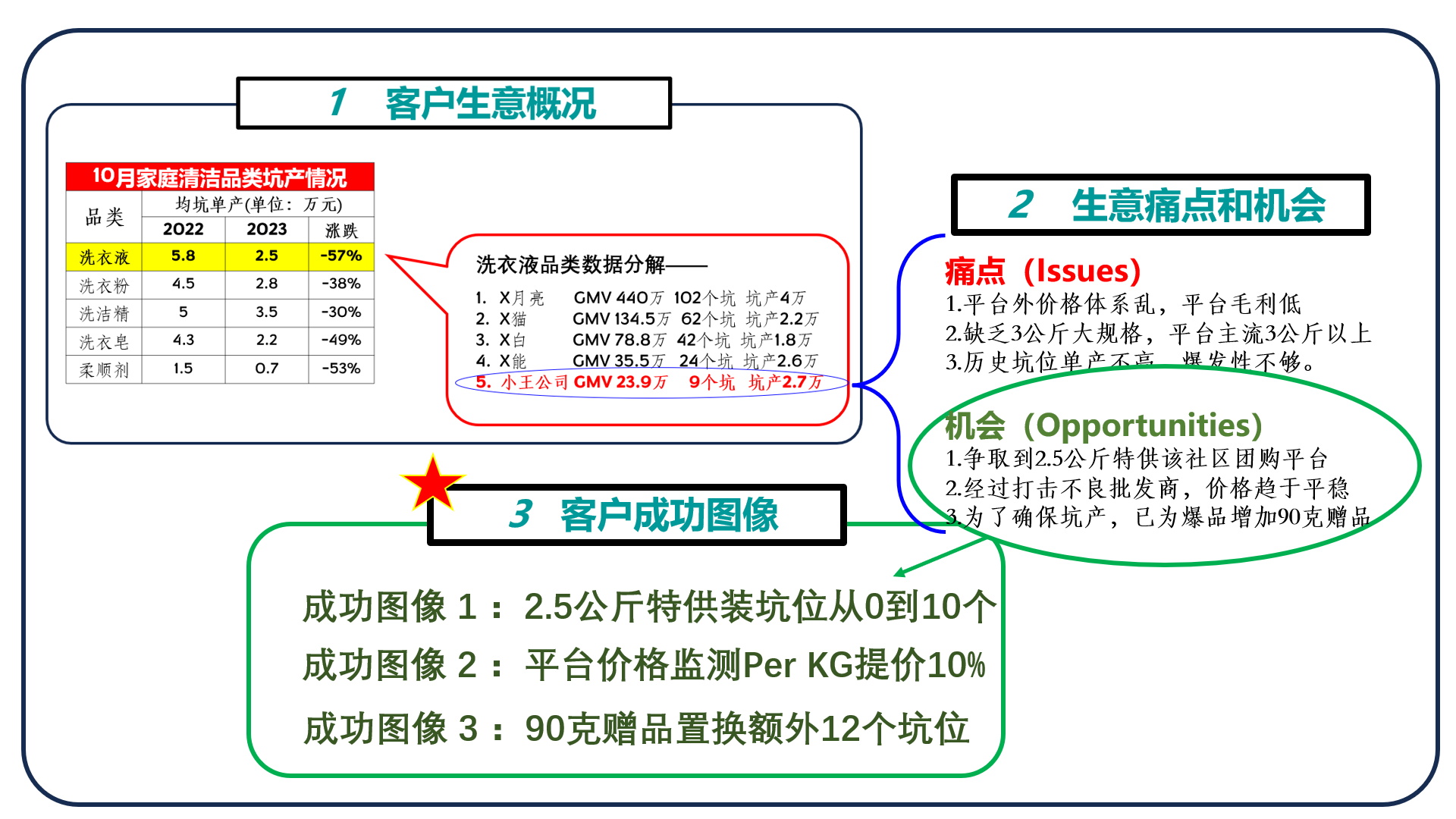 “这个社区团购的案例只是参考,更多是需要不断地实践,在实践中就能摸索出每个渠道不同客户的生意打法和计划特点,对症下药。总之,虽然我们以往并没有针对非零售客户的现有方法论,然而每个渠道类型的客户都可以通过努力制订出‘专属一页精要’计划!加油!”老王继续鼓励着……