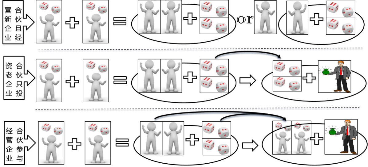 合伙+全程经营 | 合伙+投资+不经营 | 合伙+投资+主导经营 | 合伙+投资+参与经营 | ||||||||