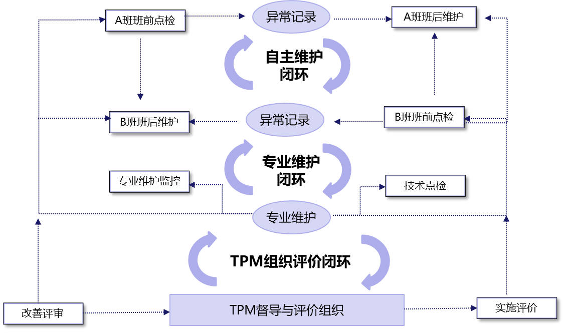 为了使设备处于一个良好的状态,TPM自主维护活动提供了一套完整的管理方法,主要有七大步骤,具体如下: