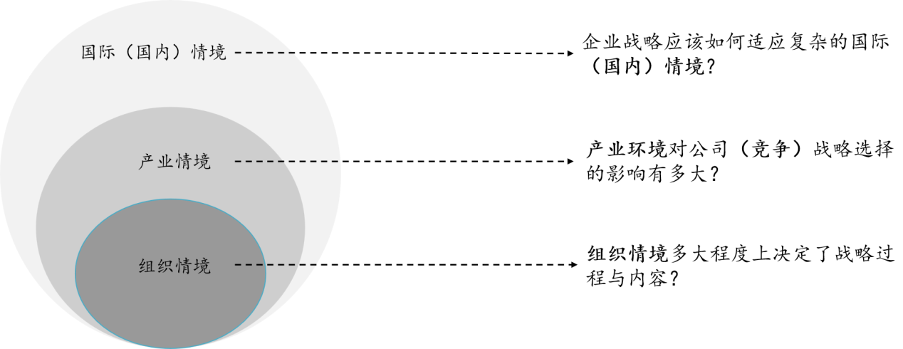 本节是基于注意力基础观来分析战略情景的,战略情境包括组织情境、产业情境、国际情境等三种情景。例如,企业不同的生命周期,战略思考重点不同;再如,新兴产业与传统产业的战略情境,也有很大的不同。