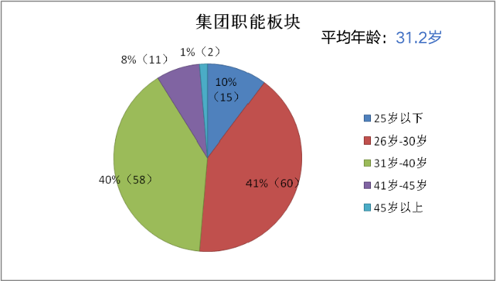 从图3-5可以看出,这家集团企业总体的平均年龄是31.2岁,但是集团职能板块(主要是管理人员)的年龄在31~40岁、41~45岁和45岁以上这三个年龄层次加起来的占比是49%,说明管理人员的年龄还是比较大的。