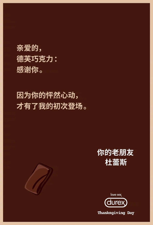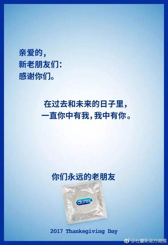 这一次的推广活动,杜蕾斯充分接住了“感恩”的主题,但又没有局限于传统的煽情的感恩套路,而是采取了一种戏谑又不是温情的手法,发起了一浪接一浪的攻势。