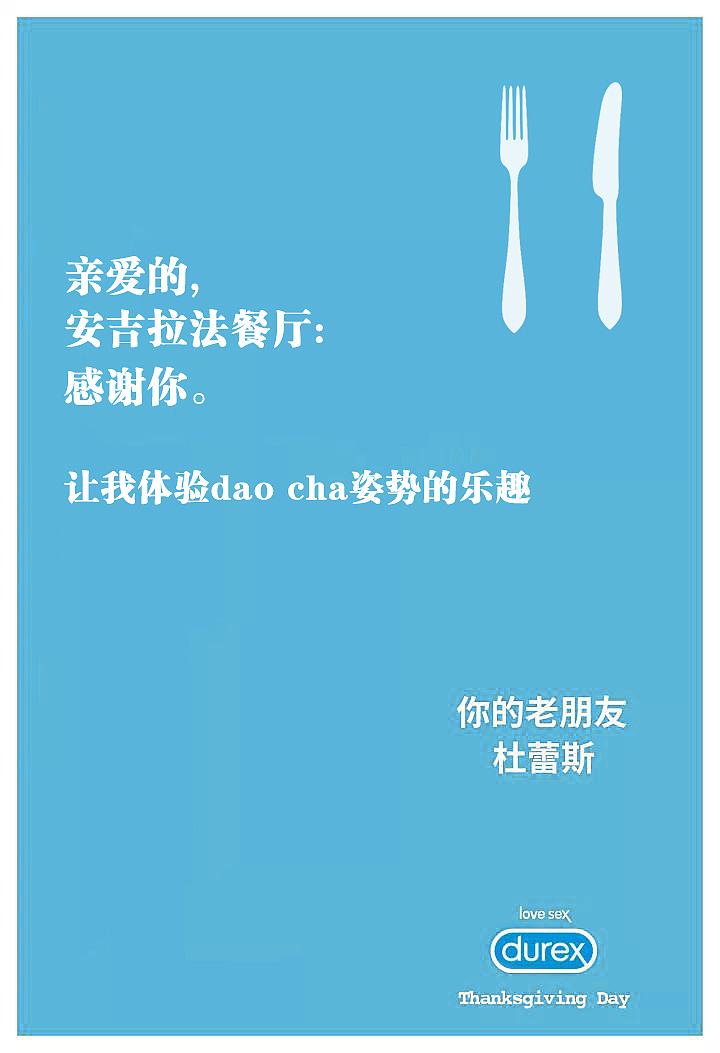 但是,至此高超还远远没有到来,紧接着一小时一张,杜蕾斯一口气放出了n张格式、风格相同,最重要的是都直指统一主题——“感恩”的系列海报。如图5-5所示。