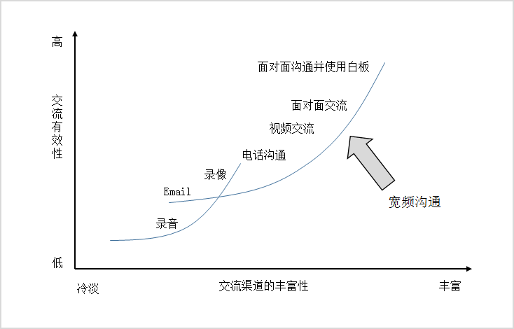 沟通的丰富性可使广泛频谱{?}的信息得到快速传输。更具丰富性的沟通渠道(例如面对面沟通)可有利于处理涉及复杂、繁杂及个人信息的情况。对传递简单、真实信息的情况可使用丰富性较低的沟通渠道,如备注或文本消息。如图6-2所示。