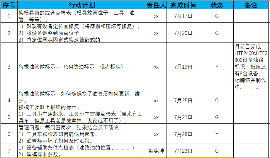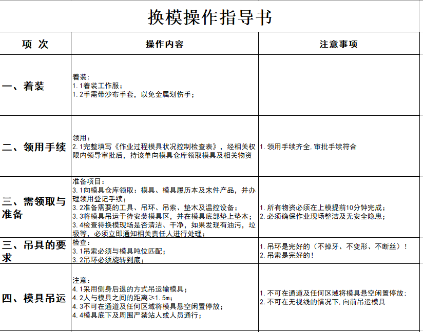 动作二 | 设备在换模的时候,事先做出计划表,让机修进行协助 | |