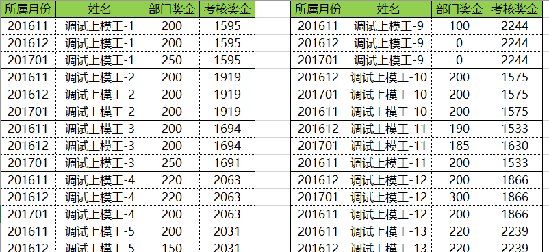 年份 | 月份 | 大线车间(h) | 小线车间(h) |