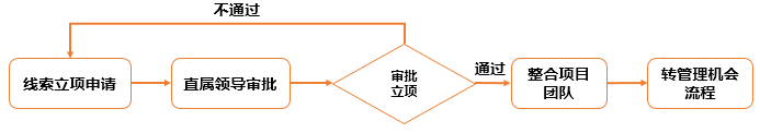 该流程主要是规范线索录入,如果有几个人都在跟踪该线索那么就整合成线索团队,形成合力争取订单,并在整合后将信息推送给相关领导。