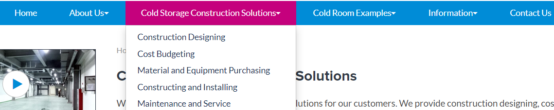 尤其要注意的是,对于那些自己没有工厂、所有设备和部件都是采购的、只靠自身专业知识和资源整合能力来承包工程的公司,可以说这些服务内容本身才是他们真正的“产品”。在这种情况下,这个服务栏目其实就等同于前面说的“解决方案”栏目,也就更加重要。必要的时候,我们甚至可以把重要的服务项目单独拆出子栏目来介绍,比如像下面这个做冷库工程的例子:
