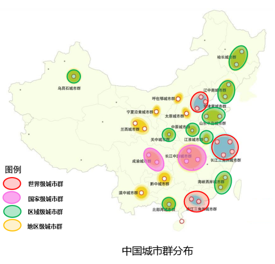 区域级 | 9 | 哈长、山东半岛、辽中南、海峡西岸、关中、中原、淮海、北部湾、天山北坡 |