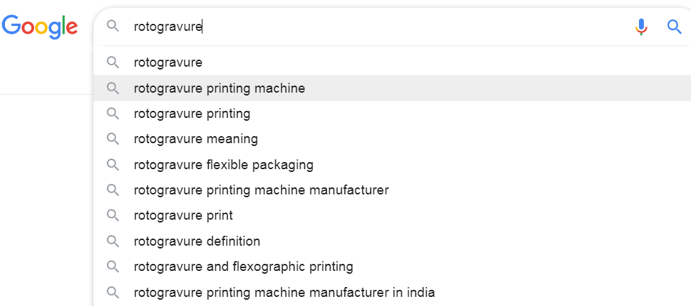 值得一提的是,以目前Google和Bing的智能,搜索结果里会自动推荐大量优质的相关内容,所以有时原本我搜索时输入的那个名称都不完全准确,搜索结果里反而会出现那个真正准确的名称。以凹版印刷机为例,读者有兴趣的话可以用“gravure printing machine”搜索一下,第一页里很可能就会出现类似“rotogravure press”、“rotogravure printing”之类的结果。所以,我们要善于利用搜索引擎的智能,如果看到搜索结果里出现了意思似乎相近的词,可以马上换这个词再搜索核实一次,可能准确性更高。