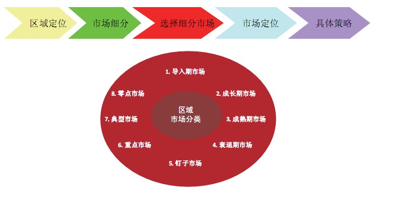 (1) 区域定位。即选择区域市场作为开发对象。在区域市场定位之前,需要对区域市场进行分类,同时把握营销资源投入最小化,达到营销目标时间最短化,达到营销目标管理最简化,规模盈余最大化的原则。