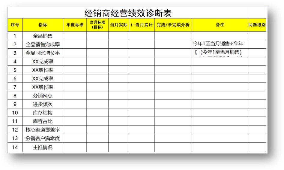 过程考核,一般而言是指对重点工作的KPI提炼,比如网点开发、终端建设、产品推广等;什么是过程考核?我们看看肯德基或者麦当劳厕所门背面的“清洁规定”就明白了;那里有一份对照表,清楚规定了清洁的标准与次数;完全量化可执行。