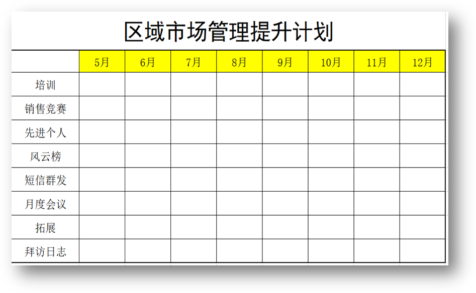 有了目标,并不意味着团队具有执行力与销售力,因为不把目标分解成计划,团队也就缺乏行动的依据,工作也就毫无章法可言;一般而言,营销层面的计划主要遵循“五到”原则,即目标分解成计划必须“到人、到产品、到区域、到渠道、到时间”。这种计划,严格意义上讲,是“结果型”计划;作为营销系统的管理,还必须要有与之匹配的“过程型计划”,即市场推广计划、新品上市计划、渠道开发计划、终端建设计划、团队建设计划、终端爆破计划、培训计划等。