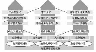 协调各类具体战略,更好地服务于银行的总体发展战略,配置专门的资源,建立战略管理机制,既要从全行的高度把握总体发展方向、整体产品和服务体系、风险管理体系等,又要结合不同地区的经济、人文和社会环境,根据目标客户的交易习惯、价值取向和风险特征,实施差异化的区域发展战略,建立适合目标区域市场和客户群体特点的业务管理体系,使“机制灵活、决策高效”的优势在跨区域经营过程中得到维持和充分释放,进一步打造和增强核心竞争力。