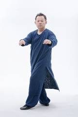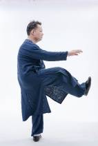 一般来说,这个式子的标准动作是两脚尖要碰触两手,但我通常不这样练。我一向不在意外形是否美观,只关注根劲与炁机导引。这个式子除了身形不好掌握外,要引发炁机运行也不容易。因为一抬腿腹部就容易用力,带脉部分就会因此阻隔而无法进行丹田运转。必须先把刚才说过的基础身形掌握好,然后再把靠山功练出的鼓荡,跟熊经功培育出来的炁机循环一切融入进去,并在脚底涌泉完整接地的情况下,才能让转身摆莲这个式子发挥最大的效用。