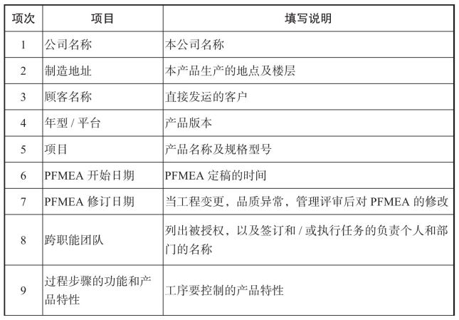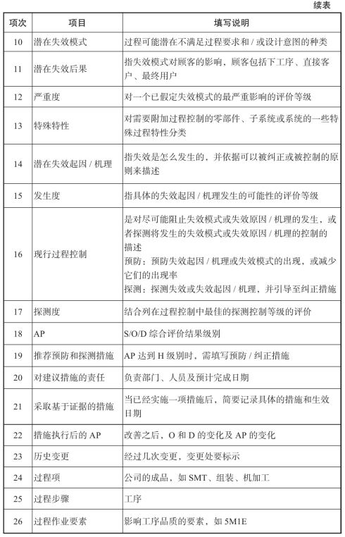 表7-5 PFMEA表格填写