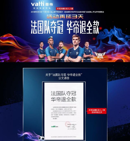 2018年俄罗斯世界杯开赛,当众多大品牌纷纷按照老套路开展赞助、植入、大声量广告投入时,华帝厨电以一则“法国队夺冠,华帝退全款”的广告迅速赚足眼球。人们纷纷不明就里的戏猜,一旦法国夺冠,这家企业将如何亏到垮掉之类。随着决赛落幕法国队真的捧起大力神杯,华帝再次成为全民关注的热点,并第一时间发出“退全款启动”的声明,决赛当晚,人们热烈议论的除了足球,就是华帝。