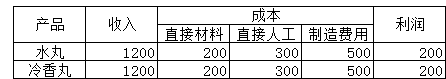 有家医药生产企业,生产产品包括水丸和冷香丸,产量均为100,售价均为12元,直接材料均为2元,直接人工均为3元。本月发生制造费用1000元。