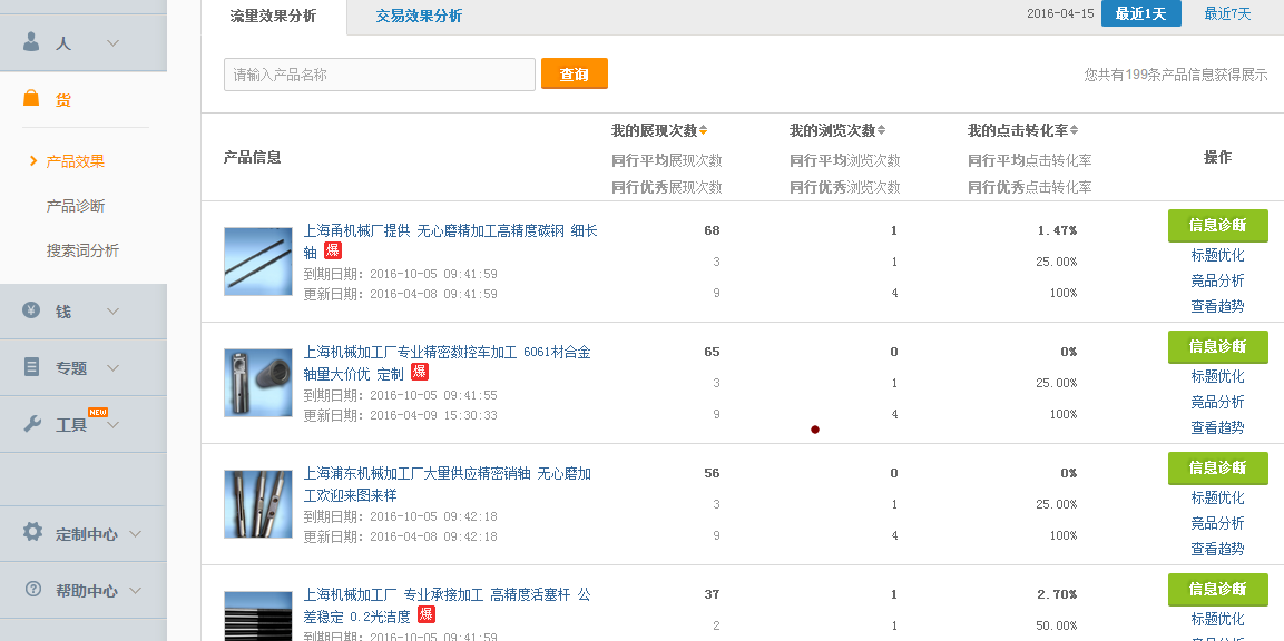 我们可以通过生意参谋—货—产品效果来判断我们的产品是否适合打造。