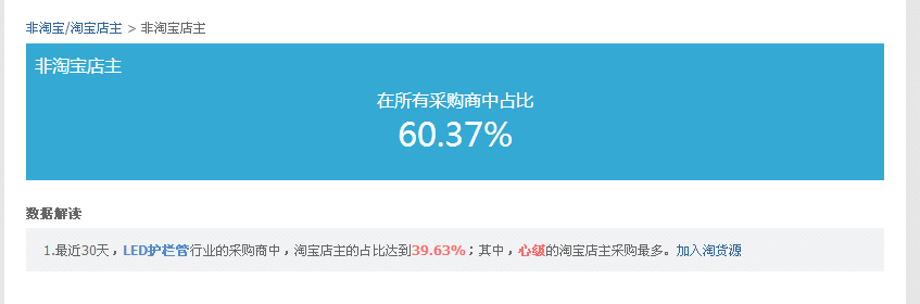 我们可以看到自己这款产品的采购商是以淘宝店主为主还是非淘宝店主为主。如果以淘宝店主为主,那我们就要研究淘宝店主的日常习惯。如果以非淘宝店主为主,那么就要从其他渠道了解客户。