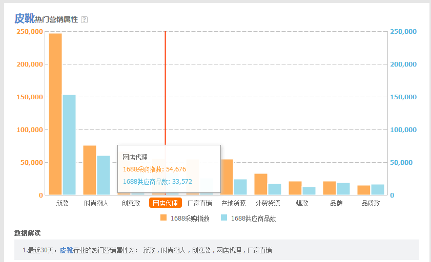 对于皮靴这款产品,若要知道几月是它的淡季旺季,我可以通过阿里指数得出以下数据:8月份开始是旺季,采购商淘宝类居多,9月至12月采购商与批发商差不多,此时我们应该依据市场变化来变换款式和价格,来应对市场的变化,以让自己立于不败之地!