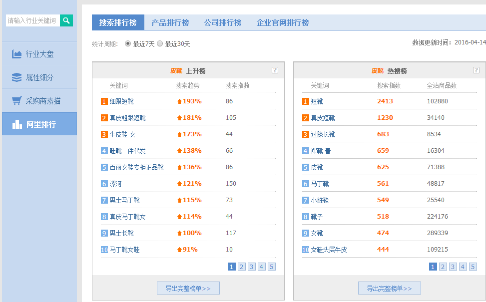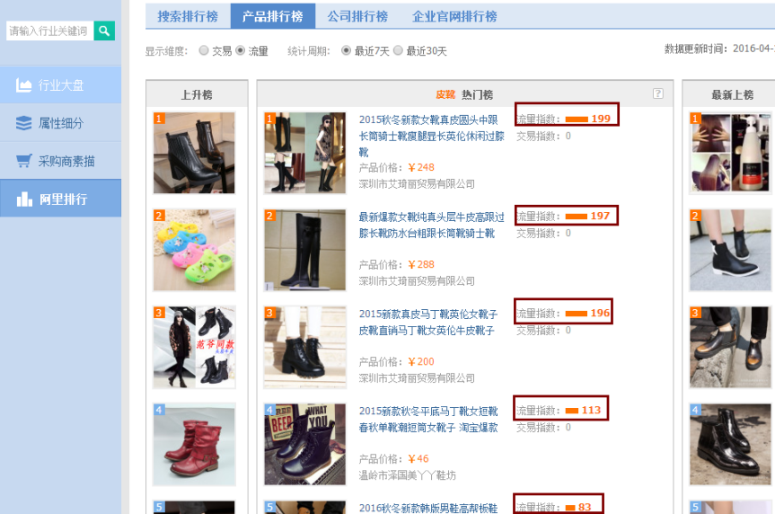 一是交易,主要看这里的交易指数(当然还要看上升榜、热销榜、最新上榜)。二是流量,因为流量关系到每天会有多少客户到店铺当中,且和转化率有很大关系。所以这里需要看的是流量指数,且可以看7天或者是30天(建议参考30天,这样就能明白为什么别人占据榜首位置久居不下了)。
