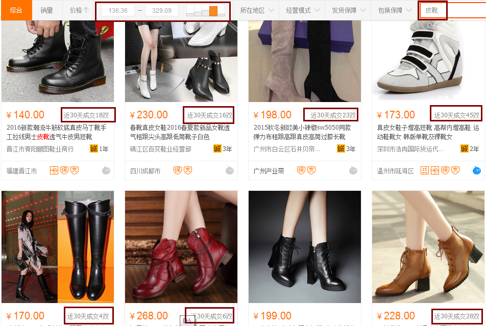 第一步,在首页搜索框中输入关键词,如皮靴,紧接着在综合排序那一排选择价格和自己产品适当或者相近的来看数据!
