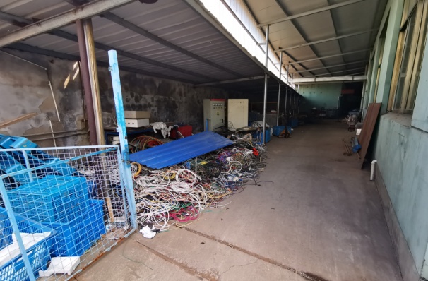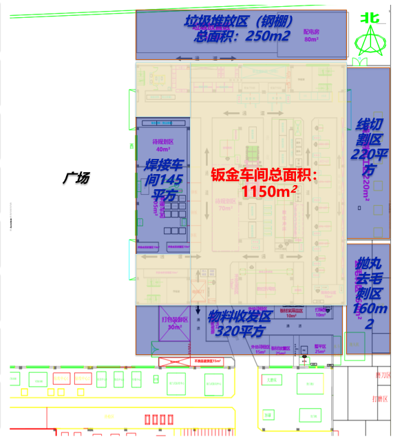 (2)厂房北面为搭建钢棚,作为钣金废料等堆放区;