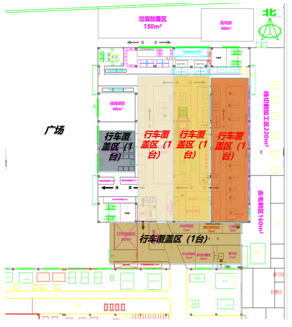(5)打磨区、机构架放置区转移,释放区域不够压力;