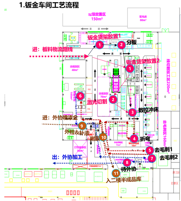 (1)板料放置区目前含3块,区域分散,影响车间美观;