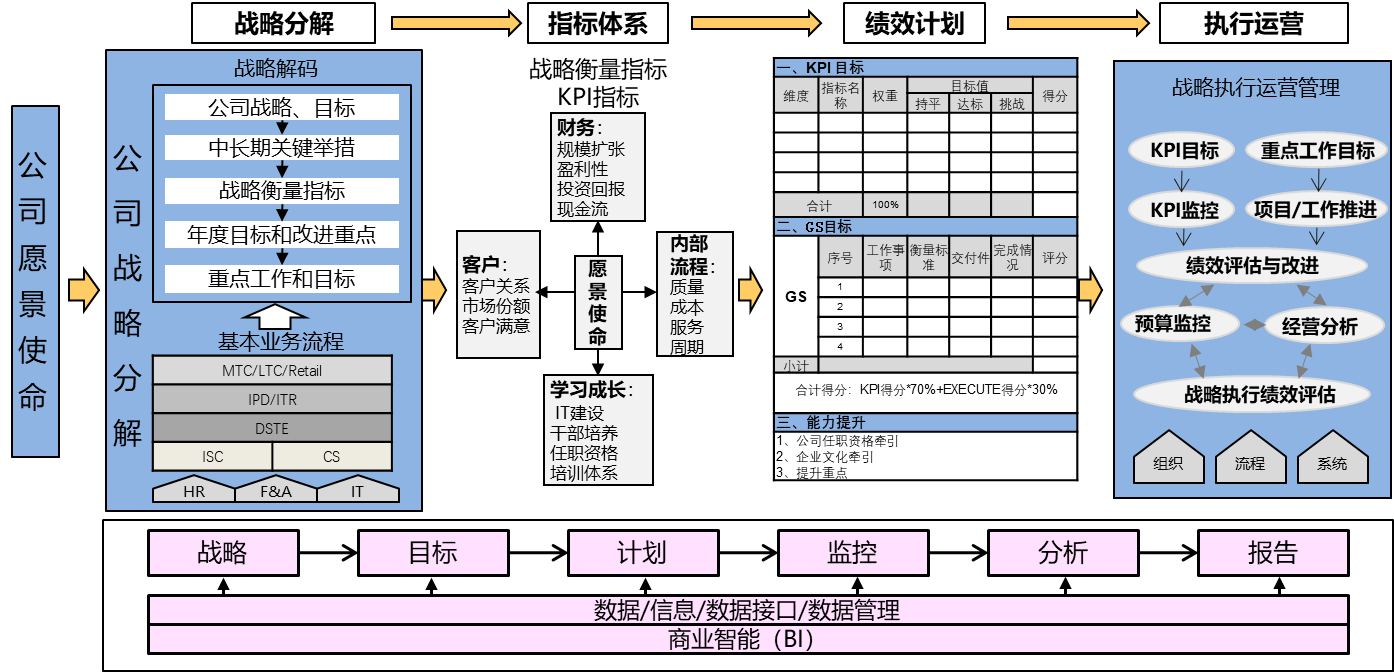 当企业开始认认真真研究业务流,并借鉴优秀企业的流程实践,持续打造自身的关键业务流程时就会发现,之前认为很难量化的工作,都在流程中找到了答案。比如某产品线总经理承担《年度某产品及解决方案BP》的主要工作任务包括:公司选择某细分市场的分析及判断;某产品和解决方案定位(金牛、明星、问题、瘦狗);各产品和解决方案策略(产品+市场的组合管理);重大项目;关键任务;所需资源;风险及应对。