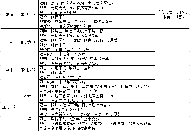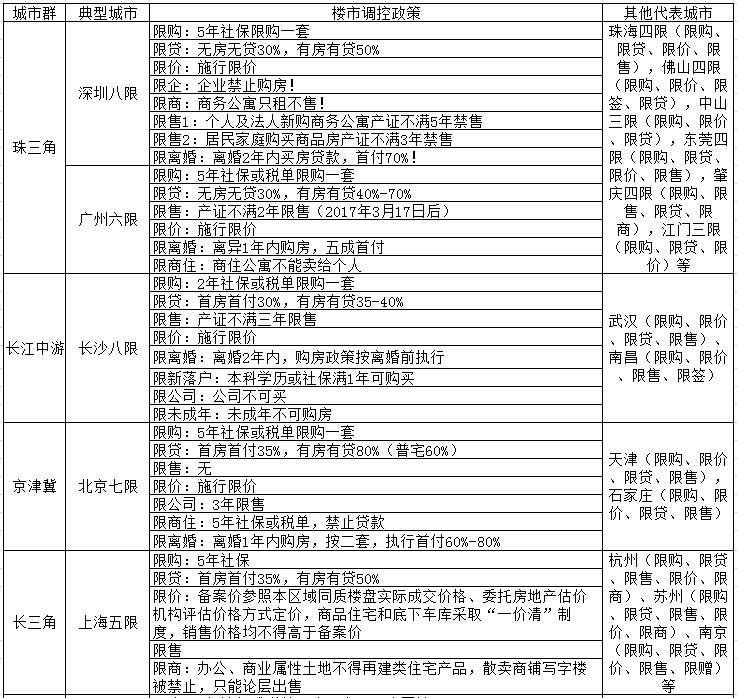 深谙“天龙八限”精髓的典型地方政府有2个,一个是以北京为代表强势挤压存量调控为主的一线城市,一个是以长沙为代表提前干预增量预防为主的二线城市。以下是各城市群典型城市的房地产调控政策汇总。