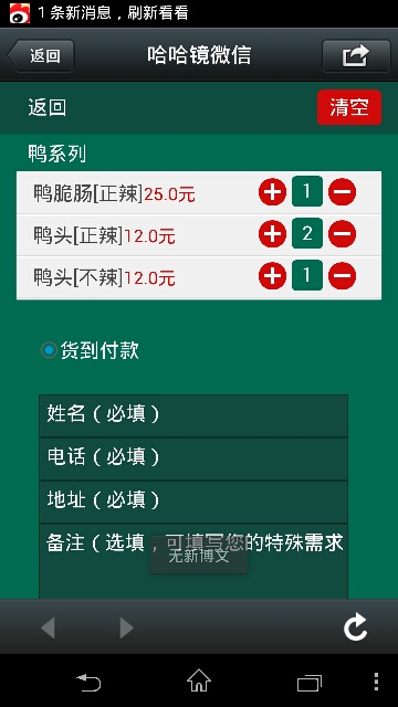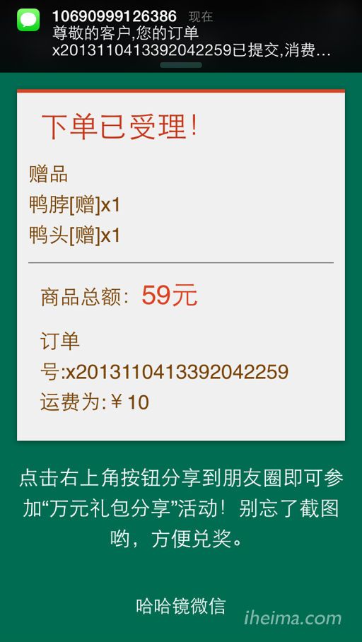 第五步,坐等哈哈镜美女送鸭脖上门享受吧。