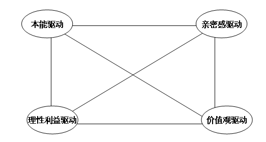 这种互克关系有六条线、十二种相克关系,每个驱动力都可以“克”另外三种驱动力,反过来,每种驱动力也会面临三种驱动力的反克。