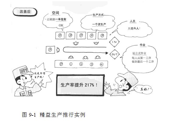 为了更好地推行精益生产方式,需要对各部门实施绩效进行评价。对实施绩效的评价主要强调为改善物流、减少工时而改变的过程和活动的数量。如果过程得到改进,则相应的成本也会降低。精益生产在其他方面的优点包括降低搬运成本、减少废品、改善品质、强化员工参与意识、提升士气和生产率水平。