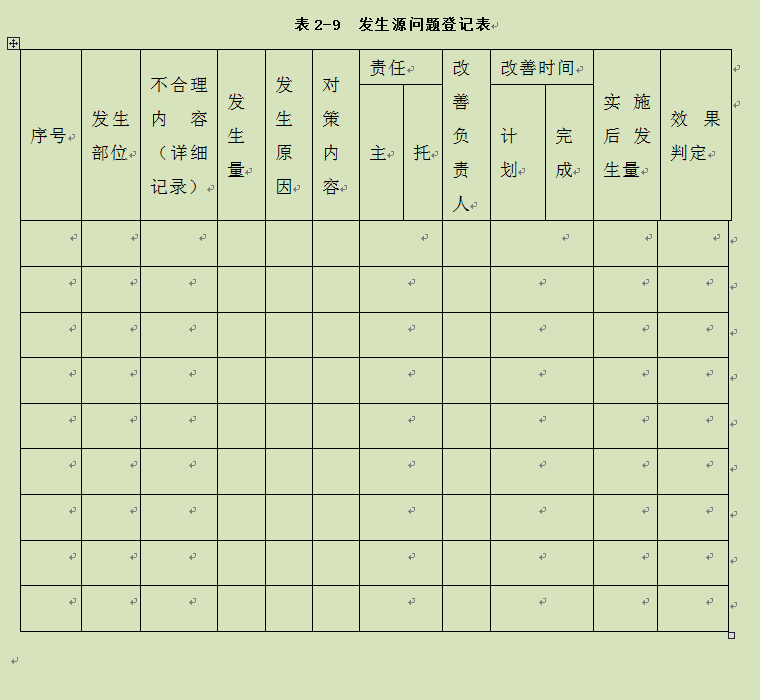 表2-8、表2-9是分别用来登记困难源和发生源问题的表格。