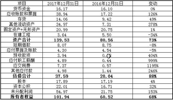 一是资产规模增加了73%,由80.56亿元增加到了139.53亿元,主要是资本公积及未分配利润的增加。即2017年实现净利润的大幅增加,与2017年超高的净利润印证。