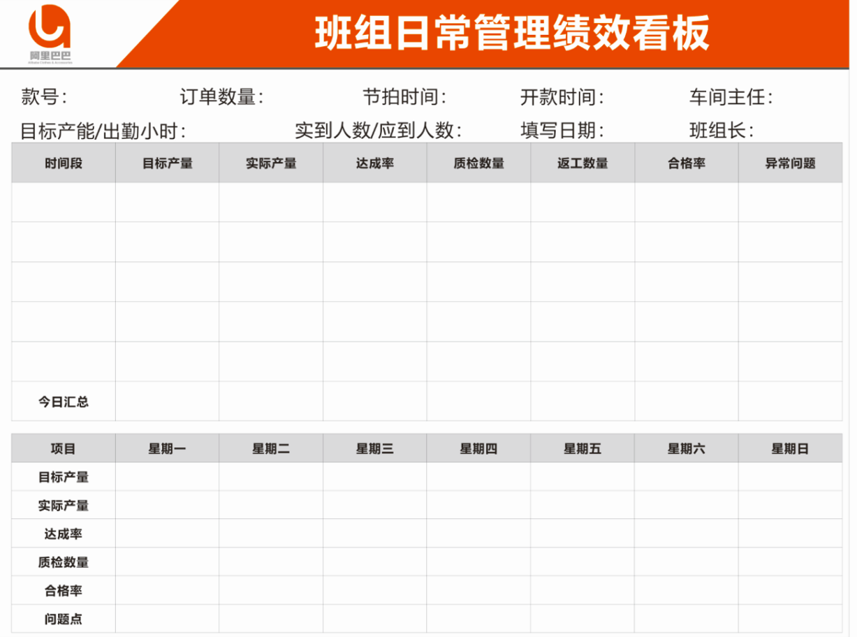 班组是以产能为目标进行生产作业的,一个班组生产能力的强弱的表现就是生产效率的高低。所以掌握并了解生产效率的计算方式,并将其可视化,做到班组所有人员情报的共有化。作为一个班组的班组长,必须将目标人均时产在早会的时候告诉每一个人,通过目标共有,让班组的所有员工为其一起努力。在生产的过程中,一定会有一些异常产生,这些异常导致班组不能按时完成目标产能,班组长就需要及时的解决异常。