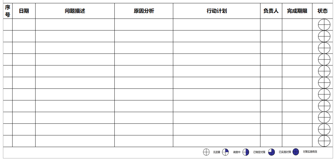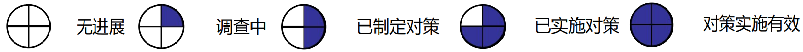 其中,表示目前知道了问题点,原因还没有找到,解决问题的行动计划还未开展。