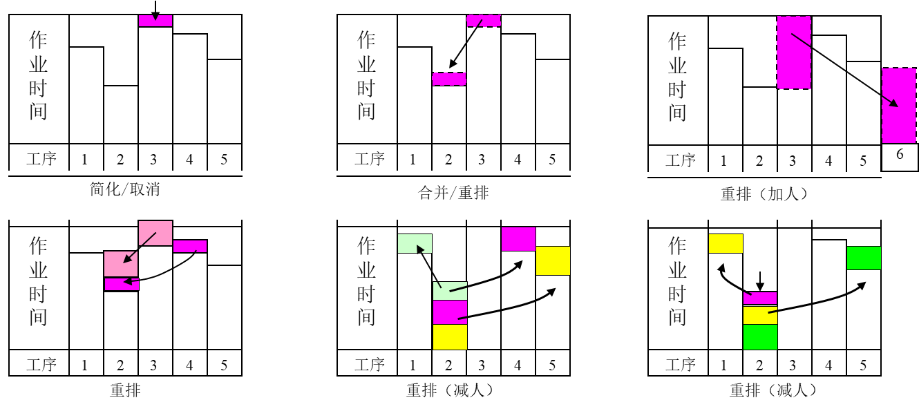 ECRS分析法,即取消(Eliminate)、合并(Combine)、重排(Rearrange)、简化(Simplify)。