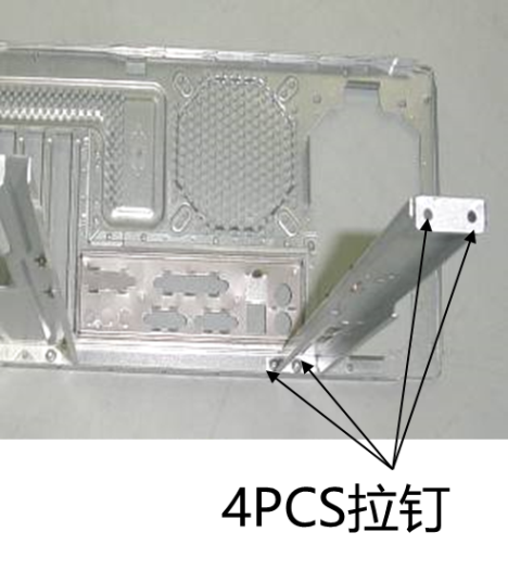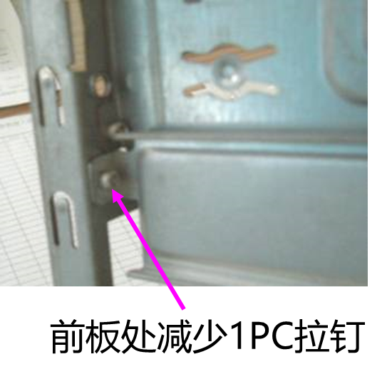 改善前:M/B小支架两端均以2PCS拉钉固定,过于密集,向设计建议减少拉钉,最终将前板一侧2PCS拉钉改为1PC拉钉 |
