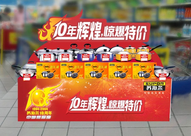 新春期间,联合金龙鱼,在全国范围内的国际性卖场以及重点区域卖场展开“好锅好油,健康美食——苏泊尔为健康加油”的大型联合品牌推广活动。(如图4-8所示)、(如图4-9所示)。