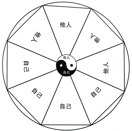 第一步,“一人一太极”,人要树立正确的价值观和崇高的奋斗目标定位。一个人就好比是一个正三角,正三角的顶点,是成功、是高峰、是第一,总之是人们必须追求的目标。人生有了一个目标高点,就不会迷失方向,就能找到解决问题的方法。
