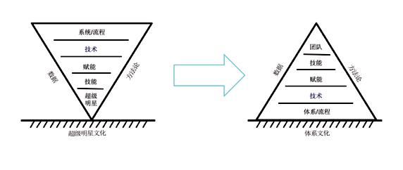 第一点,体系思维。销售体系搭建不以所谓的“大销售”为中心,而是围绕业务逻辑,用数据说话,先落地流程,再设计打法套路,给销售赋能,最后实现正能量的团队文化。一旦文化成型,团队的动能可以是无限大。如图2-16所示。